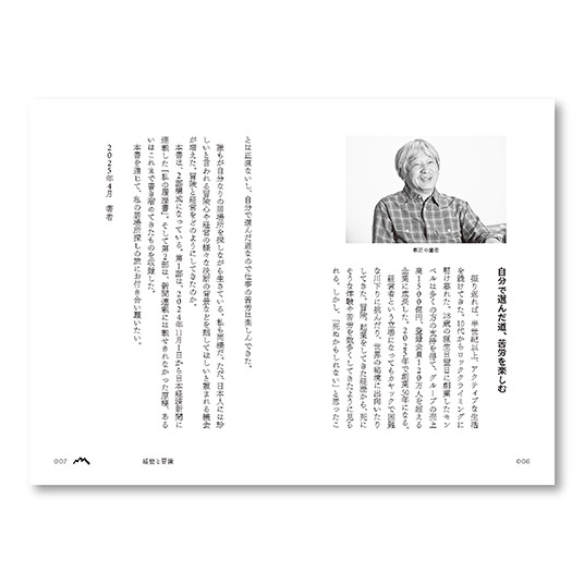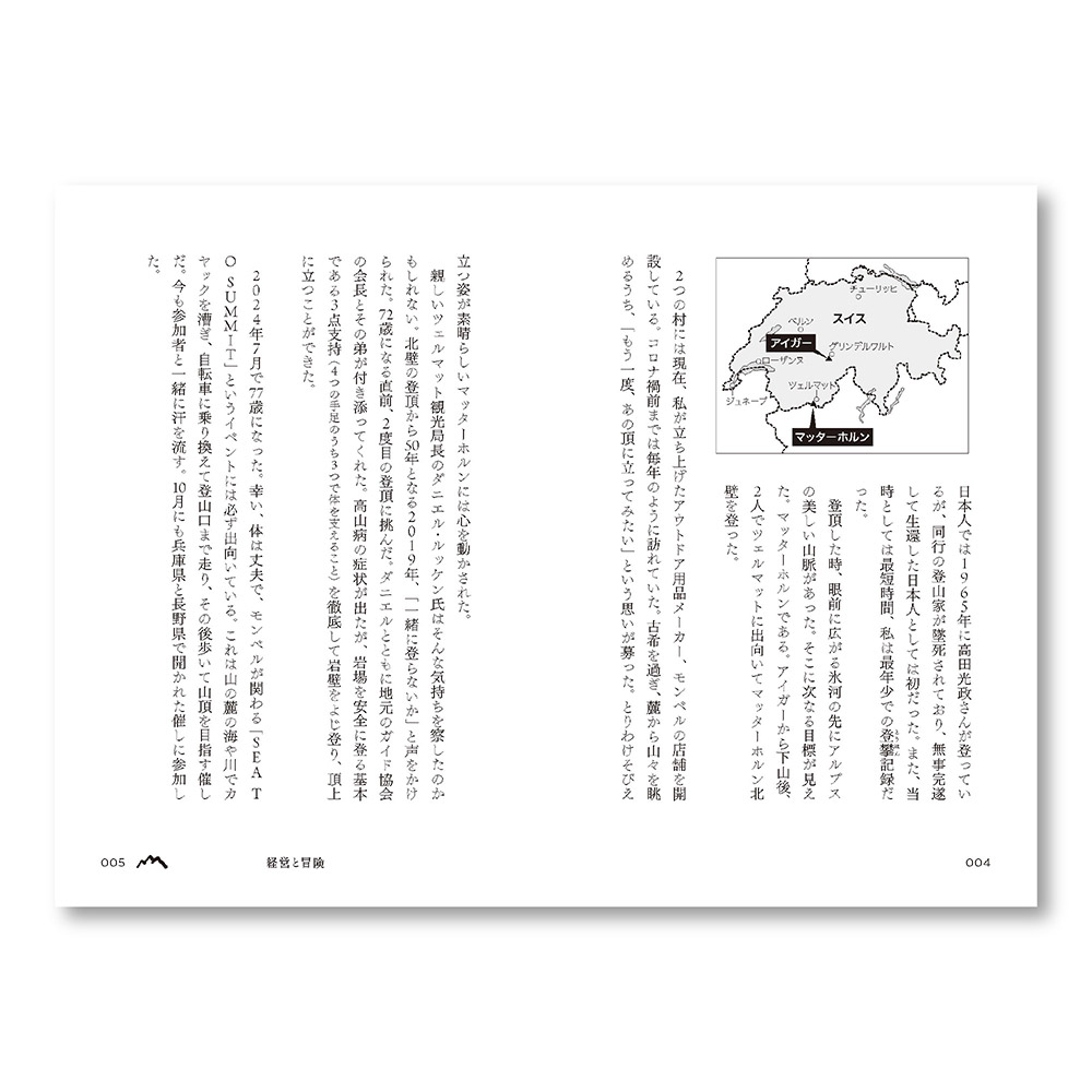 モンベル創業者・辰野勇が日本経済新聞の名物コラム「私の履歴書」コーナーに、2024年11月に連載したエッセイを書籍化。新たに未発表分のエピソードを加えた全256ページ。