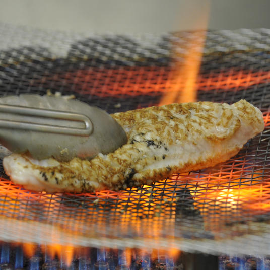 山口県萩沖で水揚げされた活〆天然マフグ身の表面を強火でサッと炙り、うま味と新鮮さを閉じ込め熟練の職人が丁寧に刺身に仕上げました。外は香ばしく、中はしっとりとした食感の炙り刺身と、旨味たっぷりで奥深い味わいの国産ふくちり。ちり鍋の後の残ったダシで作る雑炊もお楽しみいただけます。