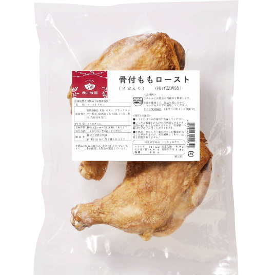 秋川牧園の若鶏の骨付きもも肉を使用しています。食塩・バター・コショウのみのシンプルな味付けですので、鶏肉本来の旨みが楽しめます。電子レンジで温めるだけで見た目も豪華な骨付きもも料理が出来上がります。クリスマスのパーティーシーンなどにぜひご家族でお楽しみください。