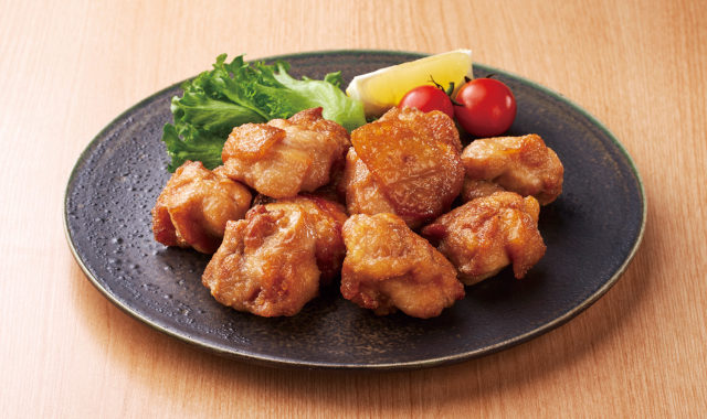 【素材】鶏肉(国産)、ばれいしょでん粉、醤油、小麦粉、生姜ペースト、砂糖、ガーリックパウダー、とりがらスープ、清酒、昆布だし、食塩、米酢、レッドペッパー粉末、ブラックペッパー粉末、(一部に鶏肉・小麦・大豆を含む)