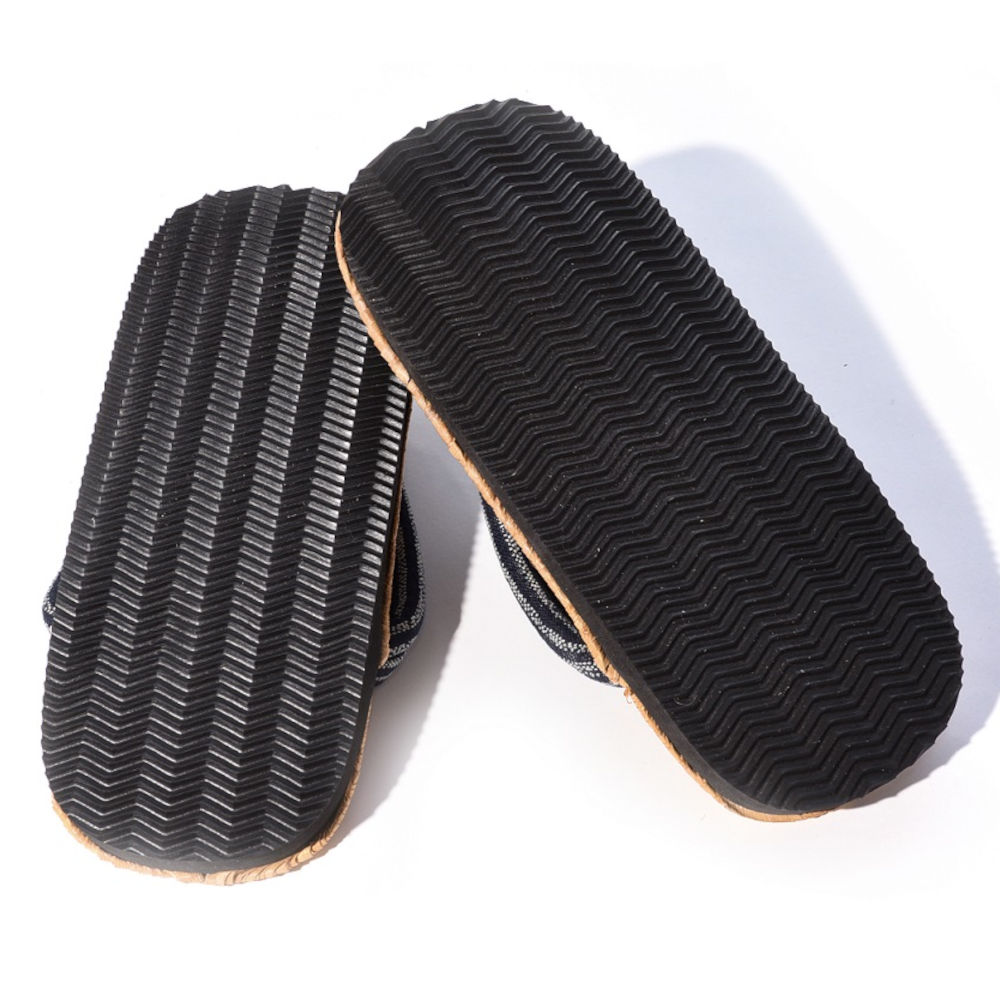 上質な竹皮を手編みで仕上げた竹皮草履と、軽部草履オリジナルのクッション鼻緒を組み合わせた室内用草履「竹皮草履・和」です。