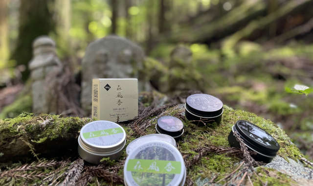 高野山寺領森林組合は、和歌山県高野町周辺の、主にお寺が所有する森林を守り育てています。森林を整備する過程で出る材木にならない枝葉などを利用して普段の生活で気軽にお使いいただけるアイテムを作り出し、その売上の一部を再び森林に還す循環のサイクルを作り出すことを目指しています。