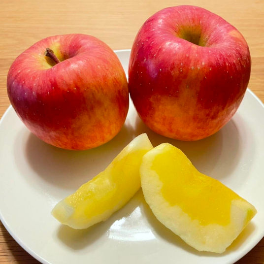 知る人ぞ知る幻の高級りんご「高徳」をご存知でしょうか。「高徳」・・・蜜の入り方。蜜が入るということはそのりんごの甘味が果肉ににじみ出ている証拠です。溢れんばかりの甘味があります。次の特徴はパイナップルのような甘い香り。パインアップルとも言われる独特な香りが特徴。切ったときに感じる香りは甘さとフルーティさを兼ね備えた香り。りんごでは感じられないような独特な香りは、食欲をそそります。食感も硬すぎず、柔らかすぎず。