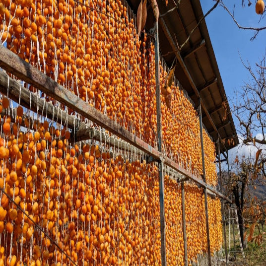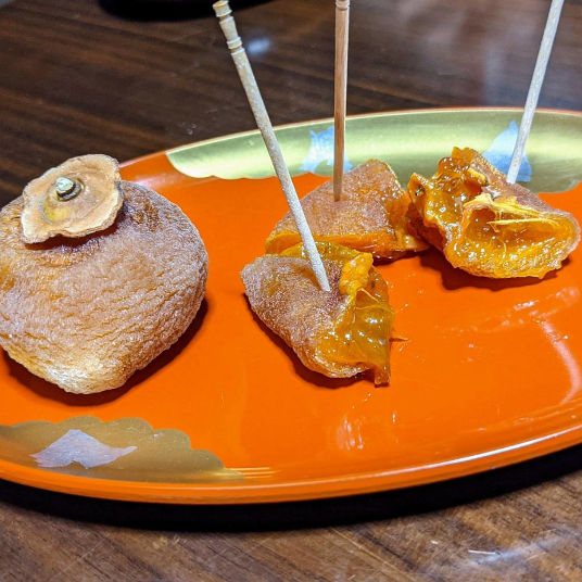 ①干柿は栄養価が高く、ビタミンAやC、抗酸化作用を持つ成分が豊富に含まれています。➁甘みが濃厚なことから昔から高級品としての評価が高く贈り物に利用されています。③近年では、チーズやバター、ワイン、ウイスキーなどとSNSで紹介したところ反響がありました。