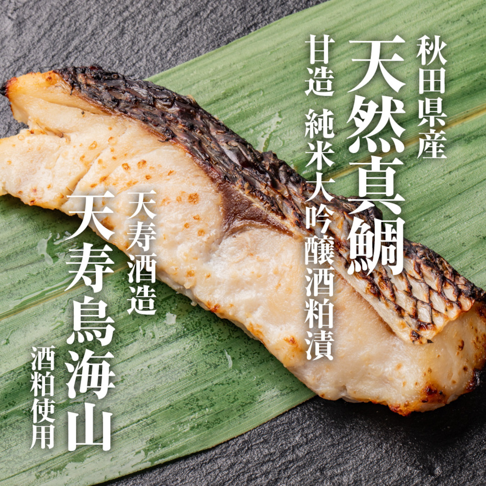 【真鯛 甘造純米大吟醸酒粕漬】真鯛(秋田県産)、酒粕、砂糖、本みりん(もち米、米麹)、食塩、醸造酢