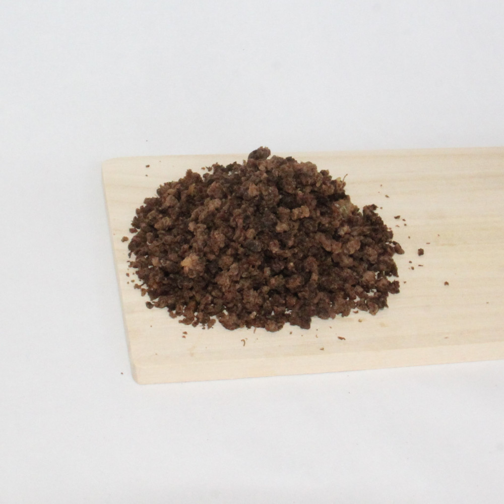 捕獲後に適正な処理をしたヒューマングレードの上質な鹿肉を使用して製造しております。高たんぱく低カロリー、鉄分豊富なエゾシカ肉。原料にもこだわり独自の製法で一つ一つ丁寧に手作りし、自信を持ってお客様へお届けいたします。そぼろ状で、食欲のない時などにフードにかけていただくと、食いつきが違います。添加物は一切使用していない100%無添加です。