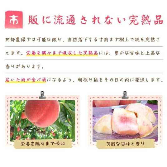 桃のカットが不揃いなため、完熟により、形が少し崩れているものがあるため ※中身はギフト用と同じ、その日に収穫した「朝採れ完熟桃」を使用しています。
