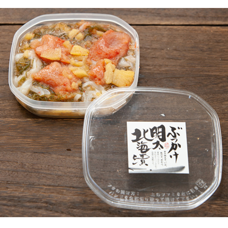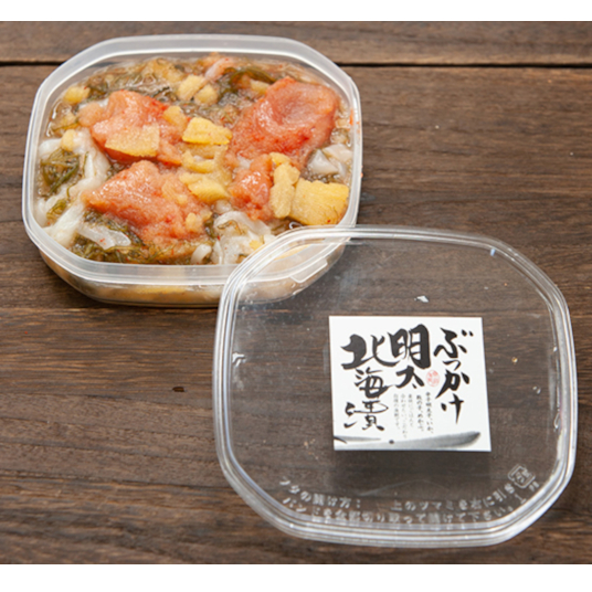 【素材】辛子明太子(助宗鱈の卵巣(アメリカ産)、食塩、醤油、みりん、酒、砂糖、昆布エキス、唐辛子)、めかぶ、いか、味付数の子(ニシンの卵巣(ロシア産)、食塩、その他)/調味料(アミノ酸等)、増粘多糖類、pH調整剤、トレハロース、ソルビトール、酵素、ナイアシン、酸化防止剤(V・C)、甘味料(ステビア)、着色料(赤102,黄5)、発色剤(亜硝酸Na)、(一部にいか・小麦・大豆を含む)