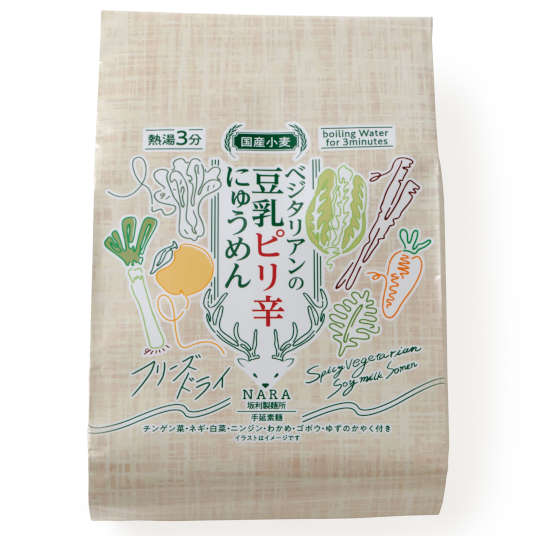 【内容量】ベジタリアンのにゅうめん(醤油60g 1食、塩66g 2食、豆乳ピリ辛98g 2食)5食セット