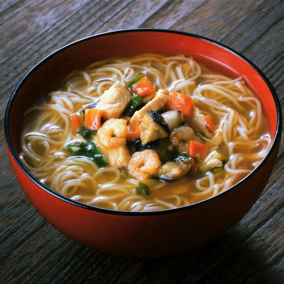 <和風カレーにゅうめんかやく>味付け鶏肉、味付けえび、人参、揚げなす、ねぎ/調味料(アミノ酸)、リン酸塩(Na)、酸化防止剤(ビタミンE)