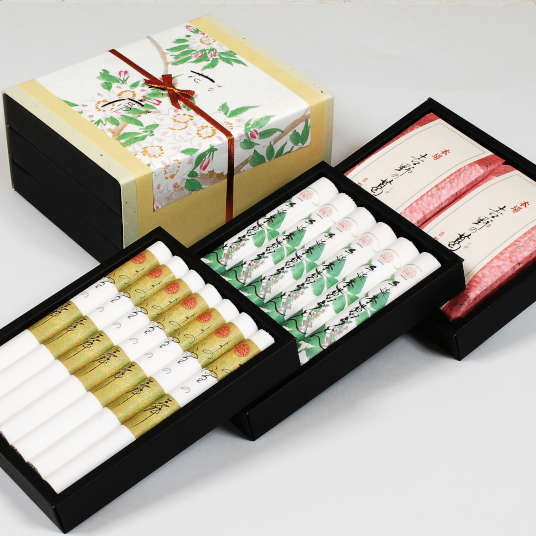 国産小麦に本葛を練りこみ、丁寧に手延べしたおそうめんとうどん、本葛をじっくり練り上げたツヤとコシのある葛餅をセットにしたギフト商品です。