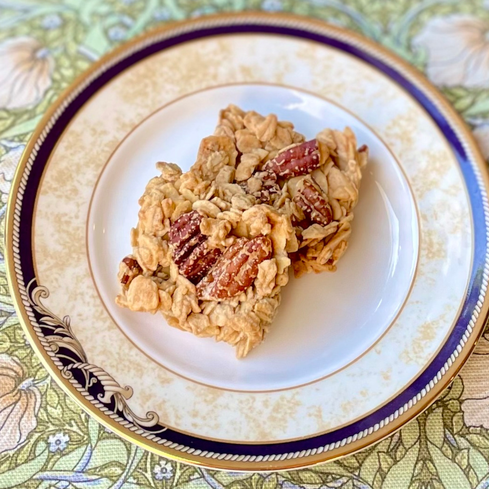 卵・バター・砂糖はいっさい使わず、たっぷりのメープルシロップでピーカンナッツとスライスアーモンドを焼き上げた、ぜいたくなグラノーラクッキー。ヴィーガン&グルテンフリーですが、いちばんの”売り”は、美味しいことです。マロンパウダーが入っているので、ほんのり栗の香りがします。絶大なファンの多い人気商品です。賞味期限は製造より2カ月です。ご注文を受けてから作ります。