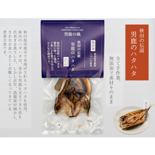 秋田県男鹿産の海産物を使用し、自社工場で丁寧に仕上げ、素材本来のうまみと香りを生かし、仕上げました。大量生産ではなく、すべて自社工場で手作業。無添加で素材のまま、安心な食品となっております。