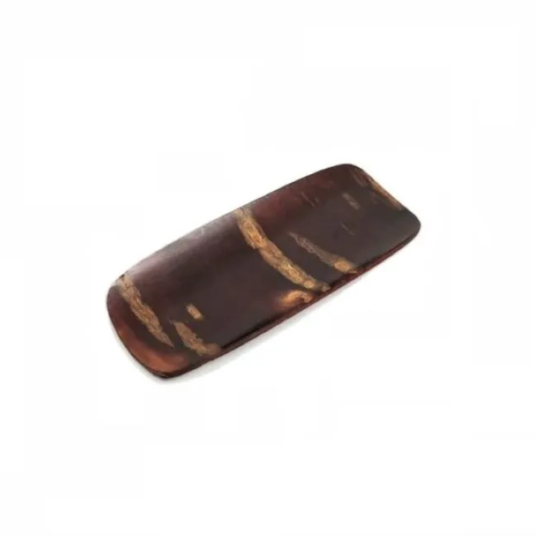 磨いた樺を何枚も貼り重ね、厚くしたものを様々な形に彫刻する技法です。彫刻した断面には美しい幾重もの層が現れます。極限まで磨くため樺本来が持つ光沢を放ち、ブローチやペンダント等のアクセサリーや、上質な茶筒の内蓋のつまみに用いられます。