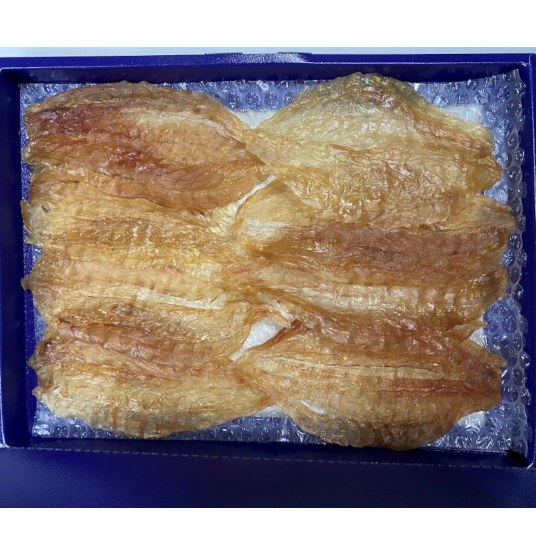 主に浜田港で水揚げされた真ふぐを使用し、自社工場で1尾ずつ丁寧に加工し、代々伝わる秘伝の味醂ダレに漬け込み干した珍味です。当店の水かれい一夜干しと共に、贈答やお土産用として古くからお得意様に支持されている商品です。