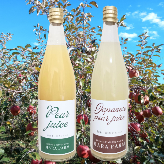 とろーりスムージータイプの濃厚な洋梨ジュース、糖度トップクラスの和梨ジュースのセット。砂糖・香料不使用で身体に優しいジュースです。農薬を極力減らした栽培方法の希少な洋梨「オーロラ」と和梨「南水」をたっぷり搾りました。きりっと冷やして自然な甘さとのど越しをお楽しみください。