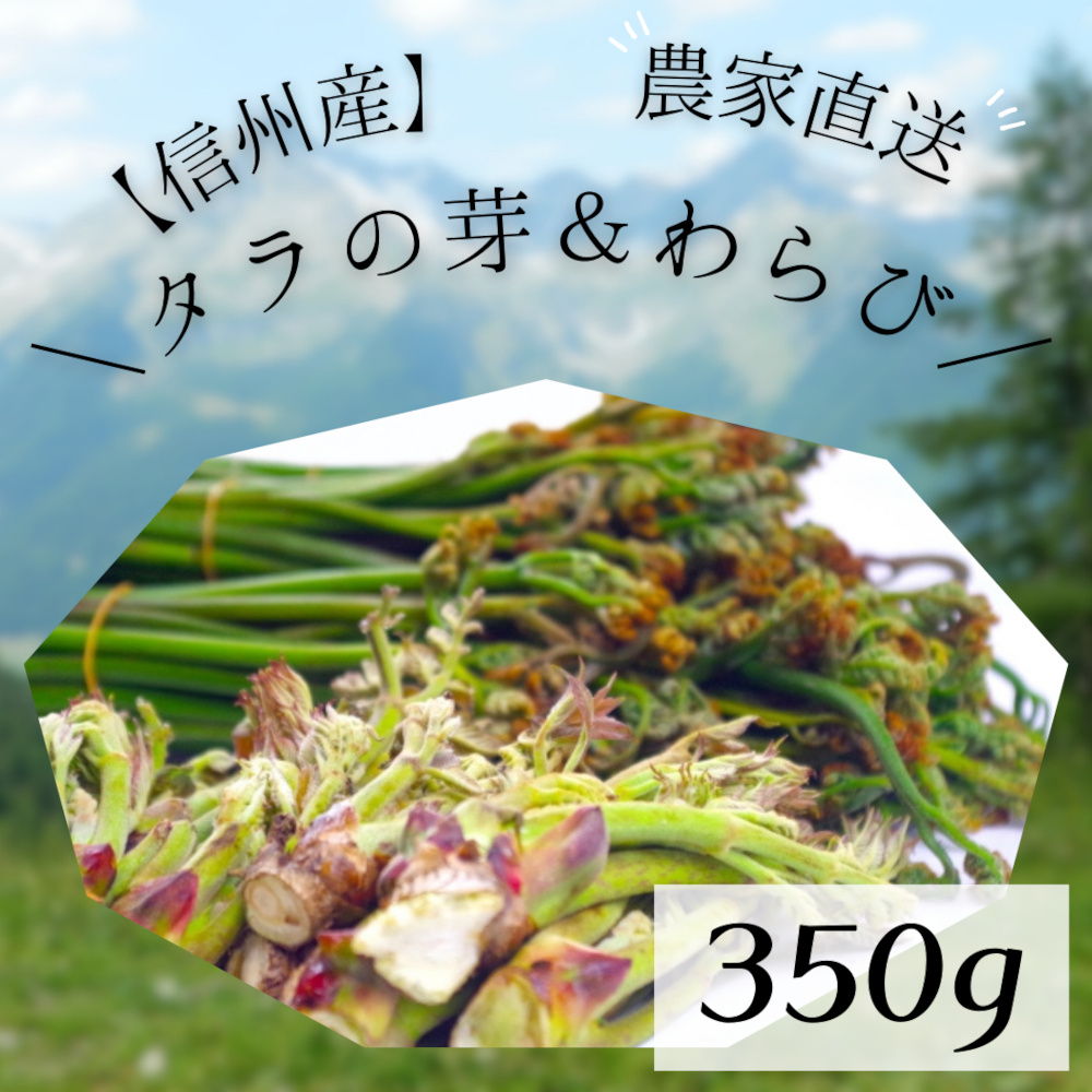 タラの芽100gとわらび250gのセットです。長野県の大自然で育った天然物をお届けします。