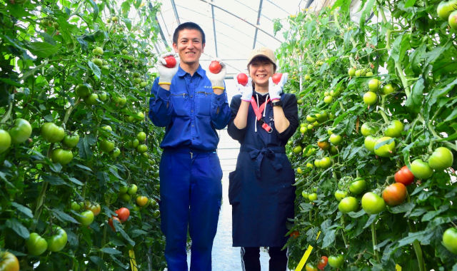 KEK【協和園芸開発)グループで安定栽培を実現した、スーパーフルーツトマトはもちろん、イチゴやメロンなど地域の新鮮野菜の販売を行っています。長年の研究により独自の栽培方法を確立することで、大きくて甘いトマトの栽培に成功しました。通常のトマトの倍の時間をかけてゆっくり成長させ、その時々の気温、湿度、天気そしてトマトの様子を見てあげる水の量や肥料の濃度を変え、徹底管理をし、栽培しております。甘いだけでなく、酸味もありバランスが良い、味の濃いトマトを目指しております!
