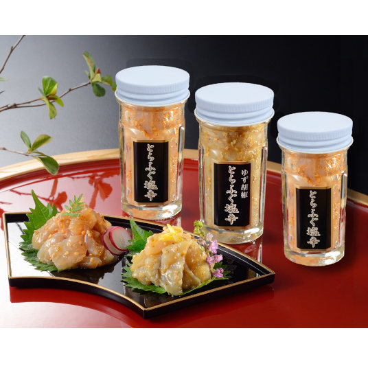 【内容量】とらふぐ塩辛60g×2、とらふぐ塩辛(ゆず胡椒風味)60g
