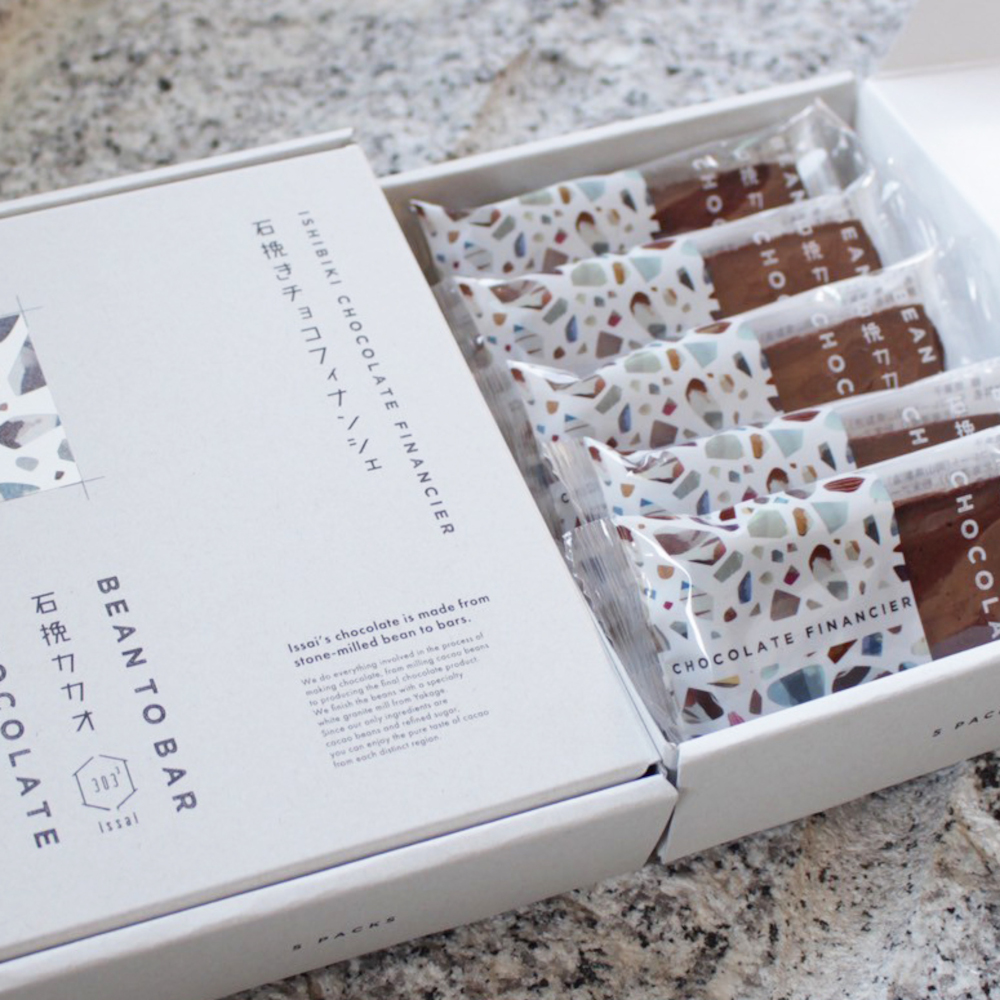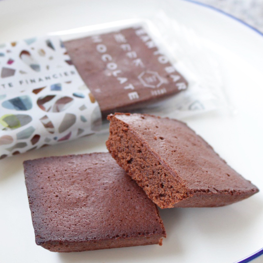弊社製造の石挽きチョコレートをふんだんに使用したフレーバー豊かなフィナンシェです。保存料無添加、北海道小麦100%で仕上げました。ベルギー製造発酵バターの風味が、濃厚なチョコレートの味わいをより一層引き立てます。