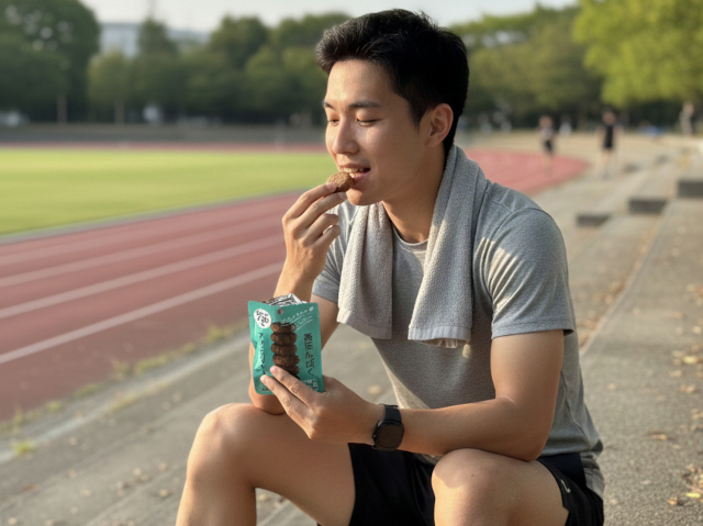 たんぱく質補給源として、日常の健康的なお菓子として気軽にお召し上がりいただけます。仕事の合間などの時間がない時の健康的な間食として、運動後のリカバリー食品の1つとして活用していただければと思います。