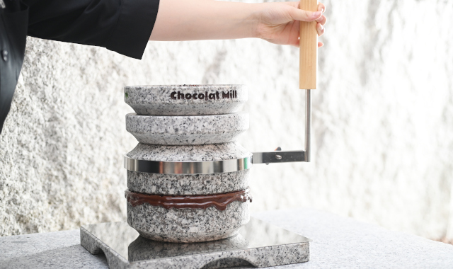 カカオ豆の選別からチョコレートになるまで一貫して自社で行う「Bean to Bar」製法でチョコレートを製造しています。地元の矢掛町産出の白色花崗岩で製造した石臼を使用し、きめ細く香り豊かな「石挽きチョコレート」に仕上げています。