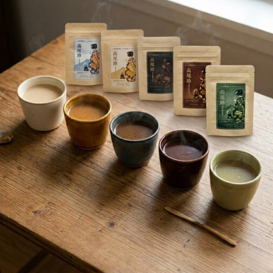 こちらは、ミルク、キャラメル、ほろにが、ココア、桑の葉の5種類を各1杯分ずつ詰め合わせた飲み比べセットです。