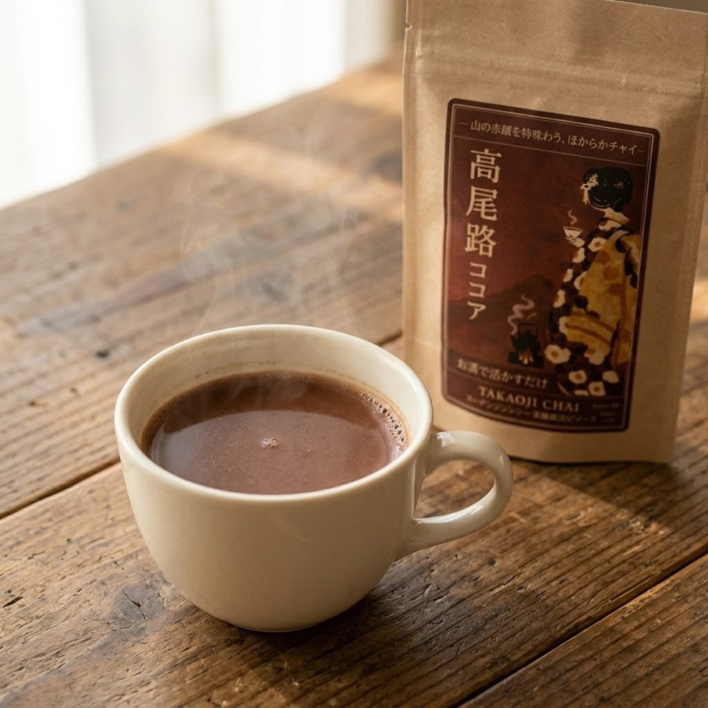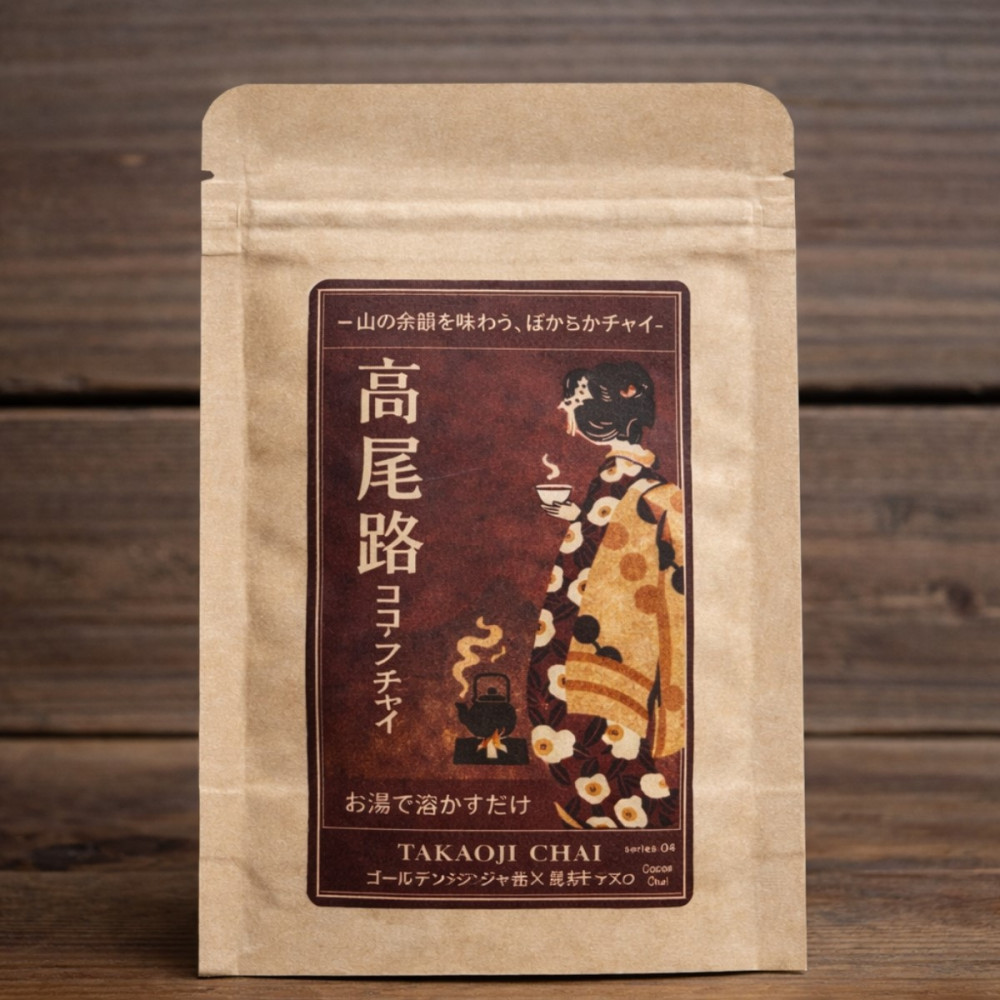 高尾路チャイ 04 ココアは、ゴールデンジンジャーと昆布出汁を合わせた、コクのあるやさしい味わいのココアチャイです。