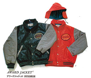 1985年発売。モンベル創業10周年を記念して限定販売されたスタジアムジャンパー。軽くて水に強い合成皮革をメイン生地にし、高い保温性とコンパクト性を持つ保温材を封入。スリムなシルエットや、当時レインウエアで採用していた米国デュポン社のハイパロン製の取り外し可能なフードも付属するなど、フィールドでの使用を意識したモンベルらしいアイテムとなりました。