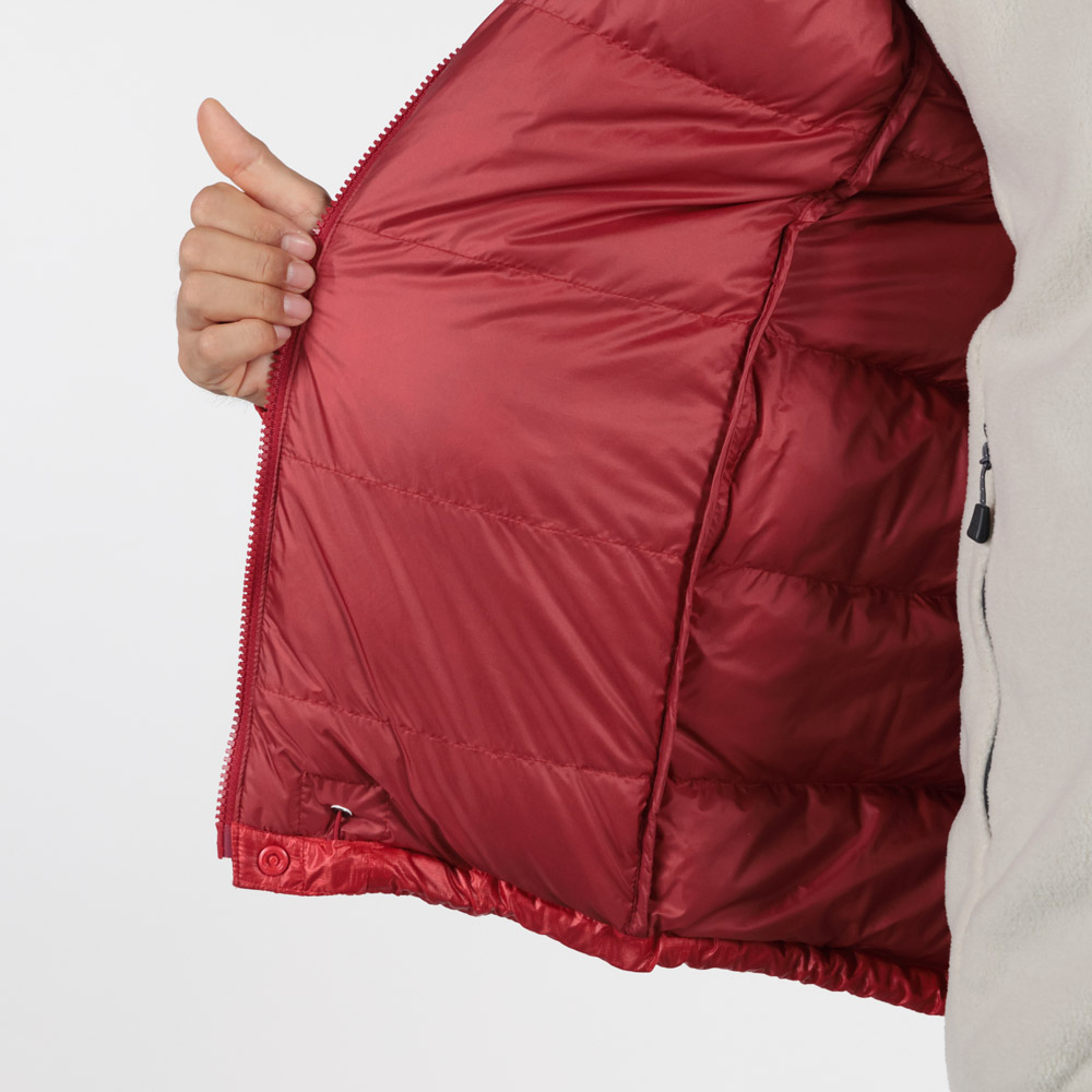 高品質の800フィルパワー・EXダウンをボックス構造で封入し、軽やかな着心地ながら高い保温力を持たせたモデルです。表地は表面を平滑にし、強い耐摩耗性を実現。クライミングハーネスに干渉しにくいダブルスライダージッパーを装備しています。