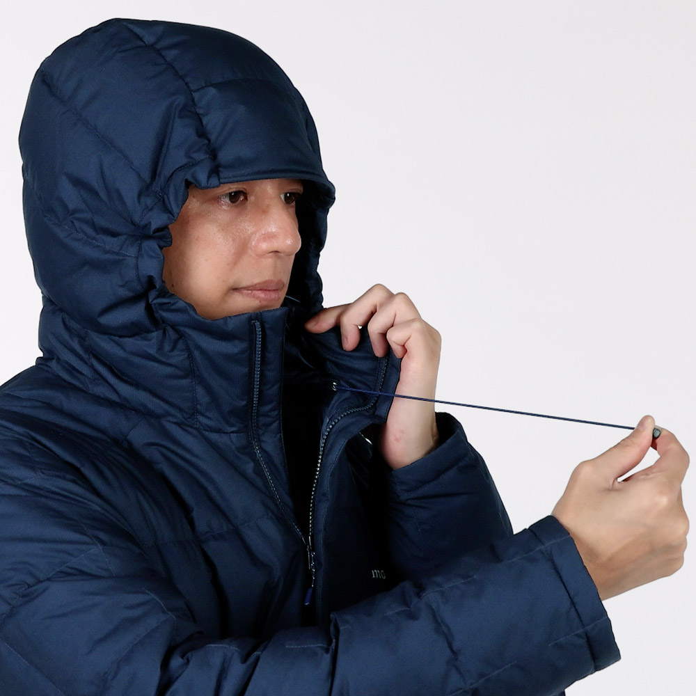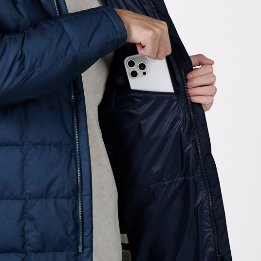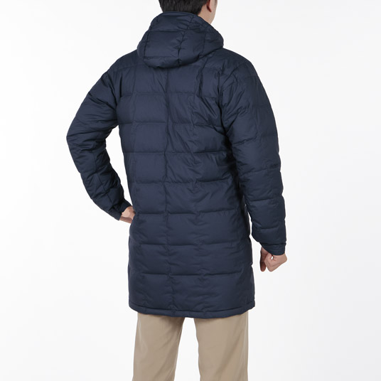 高い防風性と優れた防水透湿性を持つ素材スーパー ドライテック®で、高品質ダウンを包み込んだ軽量な膝丈のコートです。コンパクトに収納できるため、寒冷地へ旅行する際などの持ち運びに便利です。