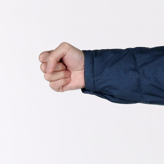 表地と裏地をつぶし縫いで縫製。ダイヤモンド状や帯状に縫製することで、中綿の片寄りを防いで保温効率を高め、軽量・コンパクト性にも寄与します。