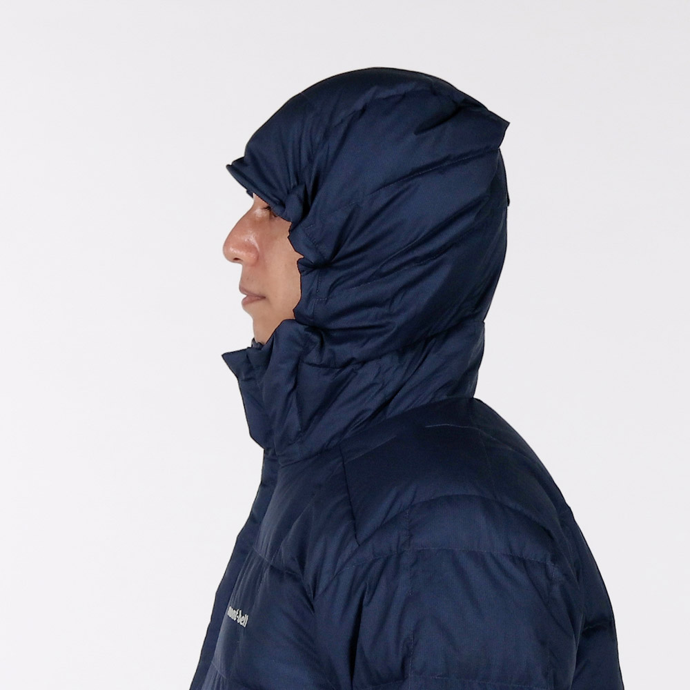 【特長】三枚差し構造(身頃、袖) / シングルキルト構造(フード) / ダウンプルーフ加工 / ジッパーがあごに当たらない仕様 / スタッフバッグ付き