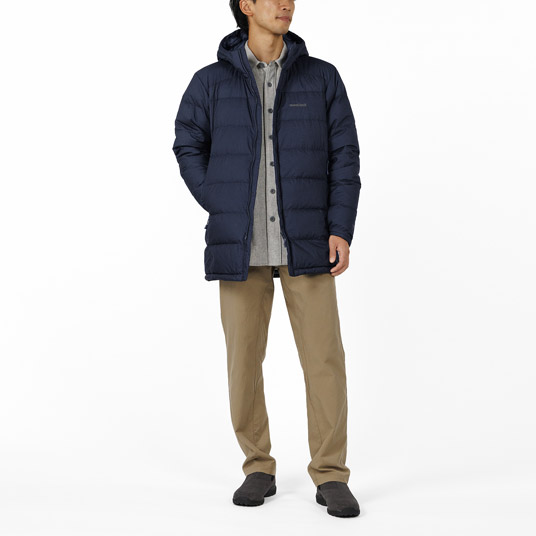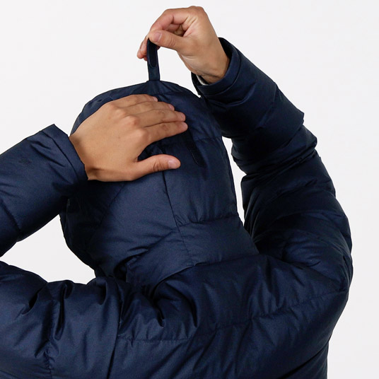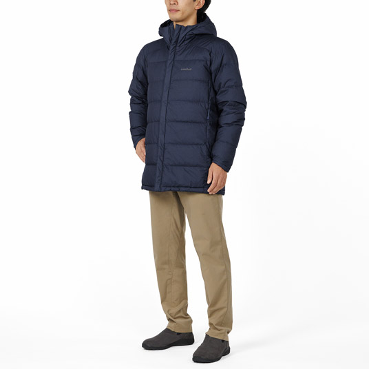 高い防風性と優れた防水透湿性を持つ素材スーパー ドライテック®で、高品質ダウンを包み込んだ軽量なミドル丈のコートです。コンパクトに収納できるため、寒冷地へ旅行する際などの持ち運びに便利です。
