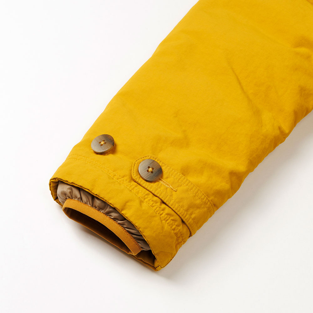 【特長】三枚差し構造 / ダウンプルーフ加工 / ジッパーがあごに当たらない仕様 / インナーカフ / ネームタグ付き
