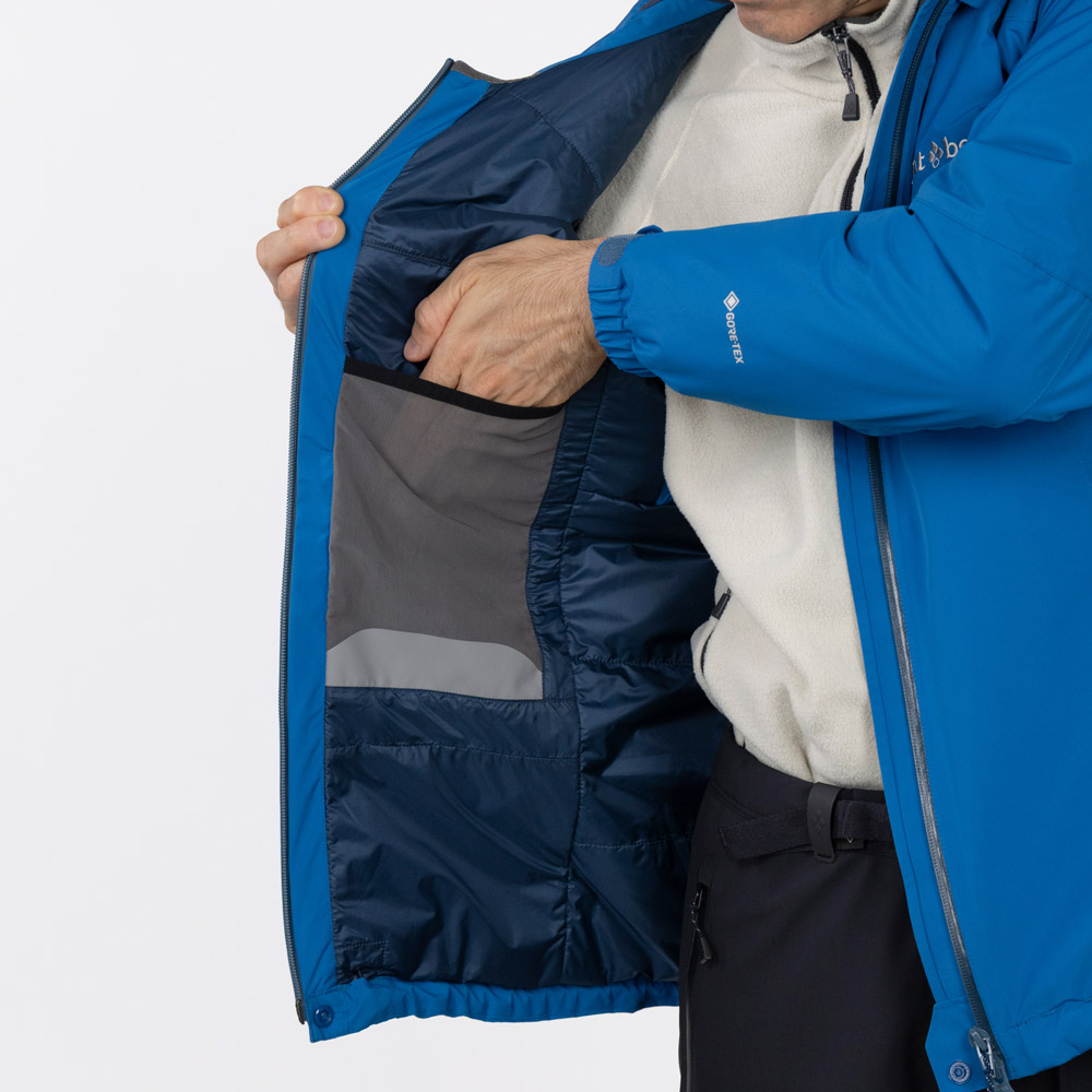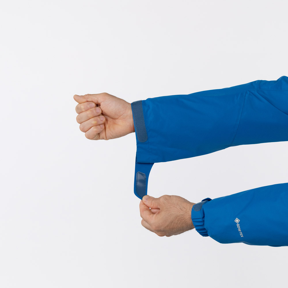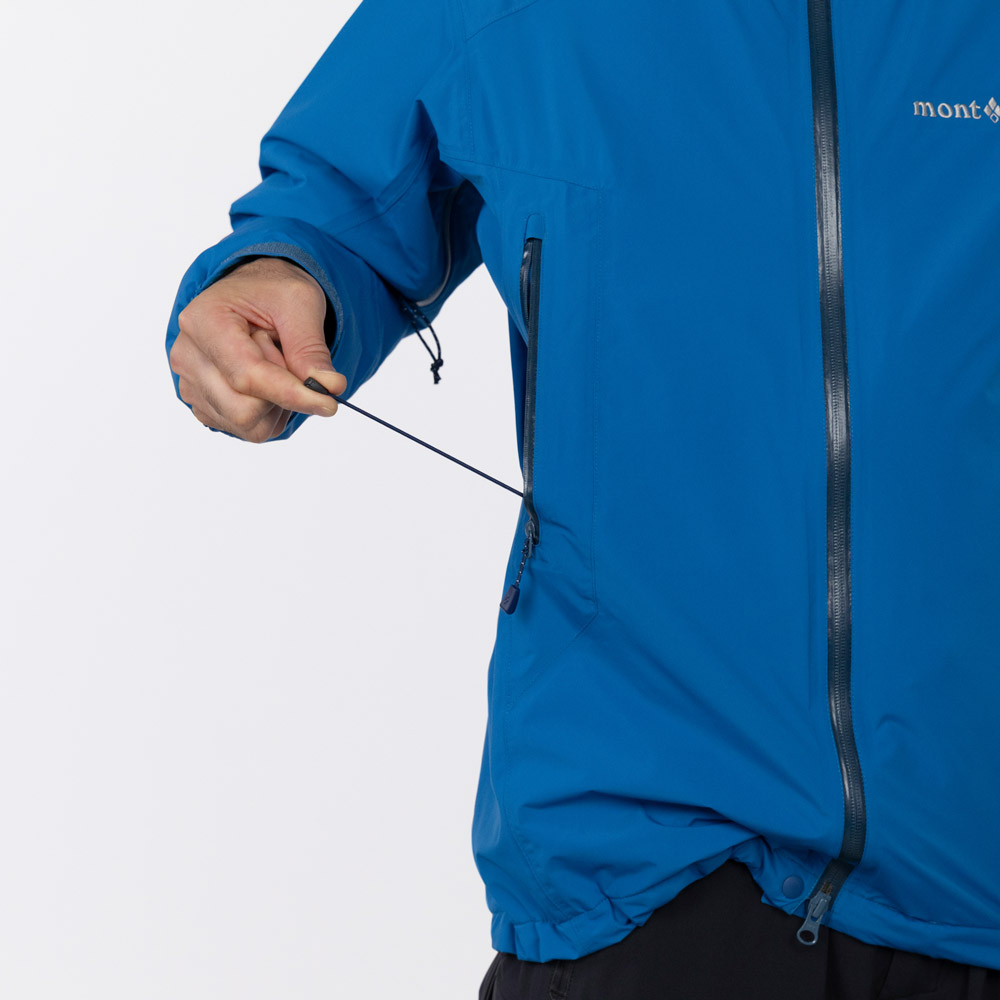 【特長】トライアクスルフード / フィット感を高める独自の立体パターン / 収納式フード / 高めの襟元 / ジッパーが顔に当たらない仕様 / エアレーションシステム / 立体裁断(肘) / アルパインカフ / スムースピットジップ / アクアテクト®ジッパー / ダブルスライダージッパー / リードインコード・システム(裾) / スタッフバッグ付き