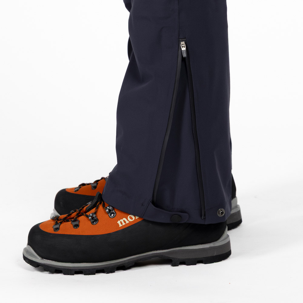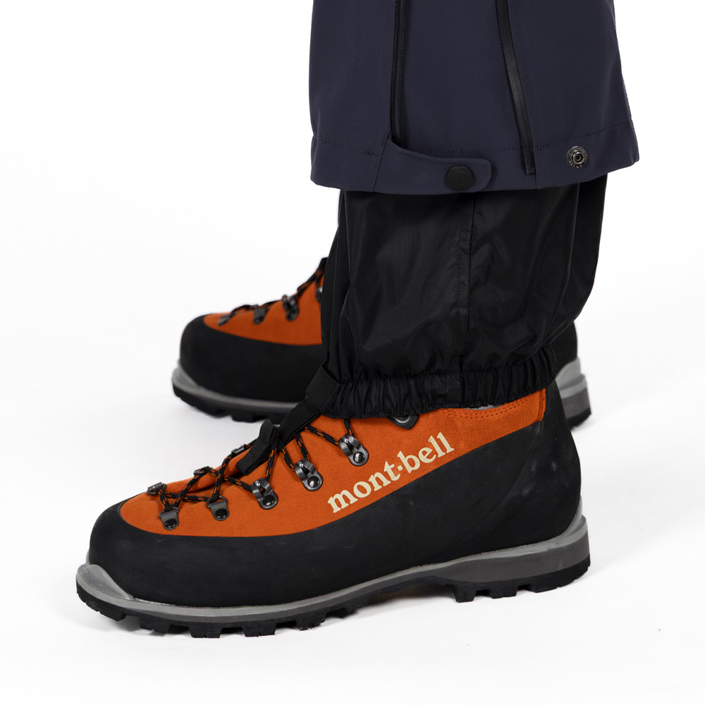 モンベル独自の防水透湿性素材スーパー ドライテック®を採用し、動きやすく快適な着用感です。裾のジッパーを開閉することで裾幅が調節可能なため、登山靴にもスキーブーツにも対応します。冬季登山から無雪期のトレッキングまで幅広いシーンで活躍します。