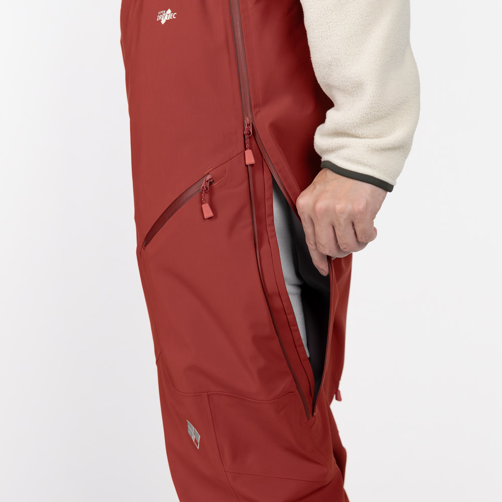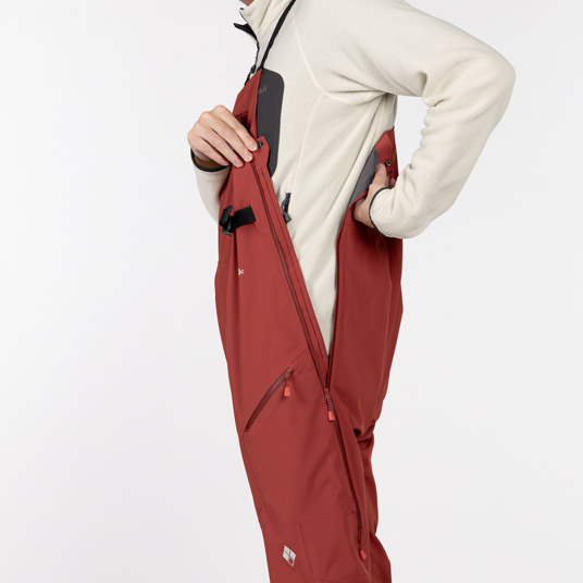 スキーやスノーボードなどのスノースポーツに適した胸の高さまで覆うデザインのビブです。透湿性とストレッチ性に優れたモンベル独自の防水透湿性素材スーパー ドライテック®を採用。スキーブーツなどの大型ブーツに対応した裾幅です。一カ所のバックルでサスペンダーの長さを容易に調節可能。