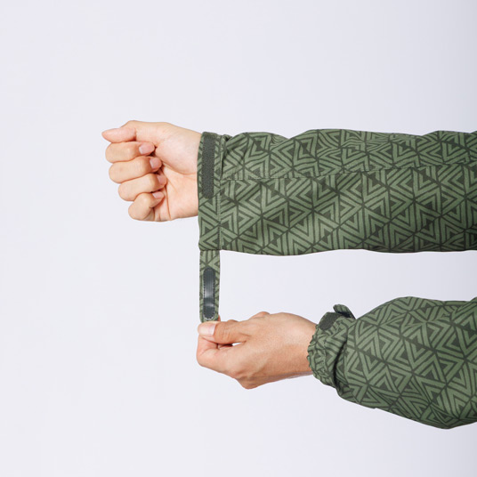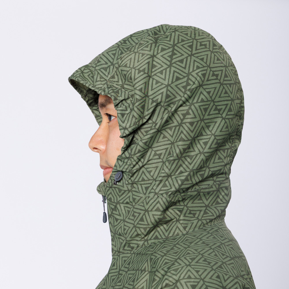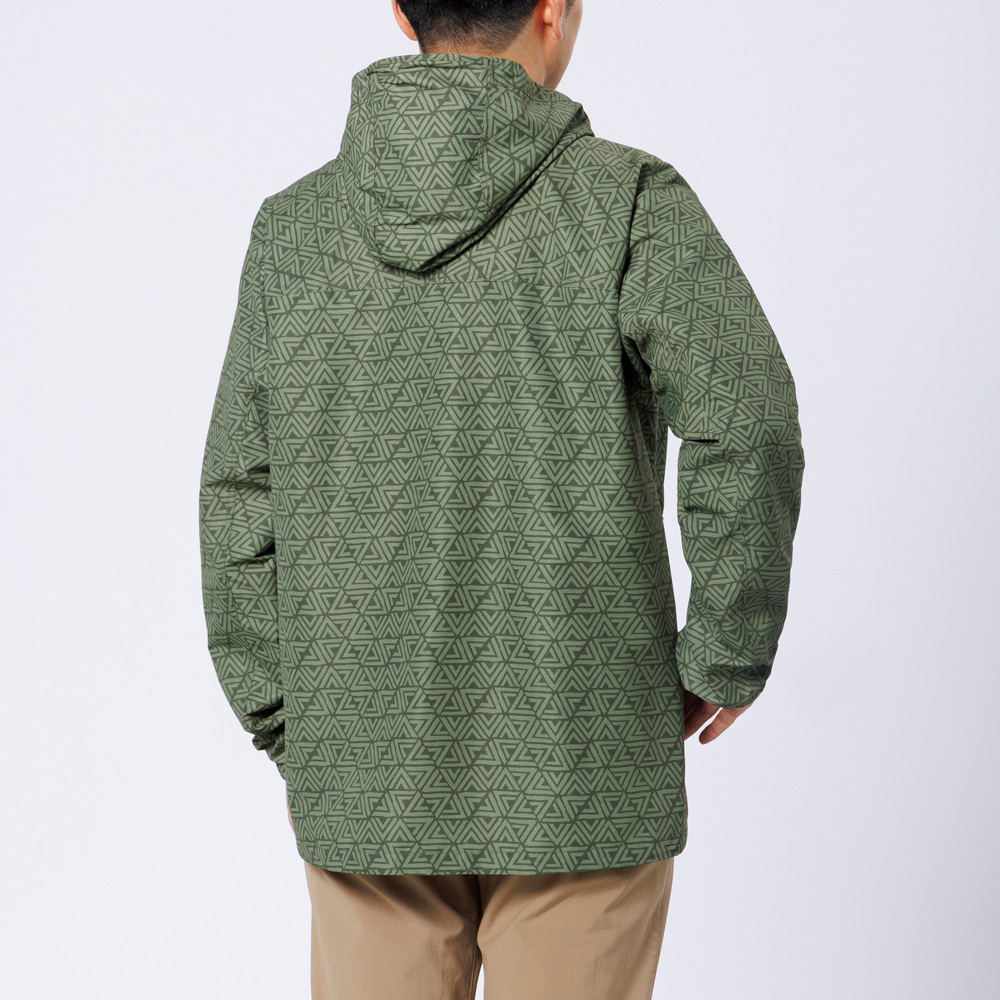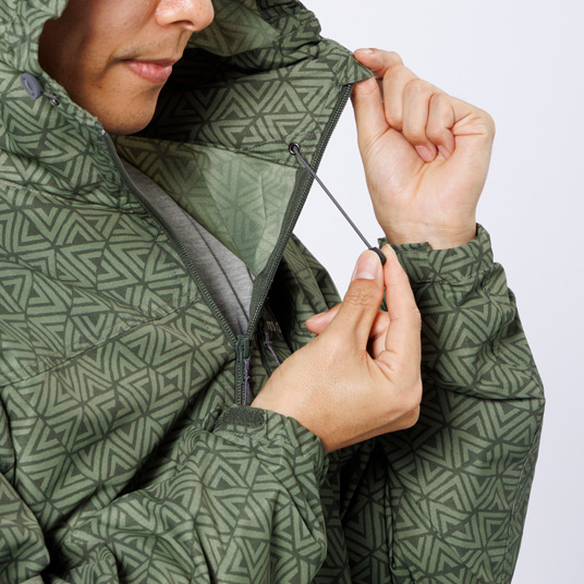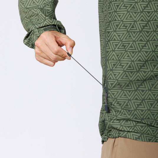 コットンのような風合いを持つプリントパーカです。適度なゆとりを持たせたシルエットで、軽やかな着心地。リードインコード・システムとアルパインカフで裾と袖を調節できます。