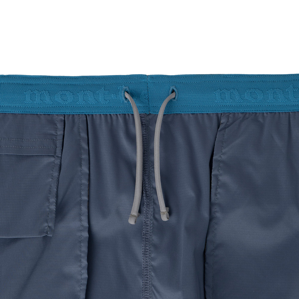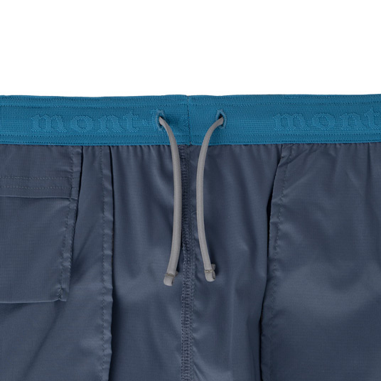 保水しにくく、軽量でハリがある素材を使用したショーツです。足上げしやすい長さでスピードハイクやランニングに適しています。丈はミドルショーツタイプよりも短い設定にしています。裾の両脇にスリットを設け、走る際の生地のつっぱりを減らし足さばきを良くしました。ランニングに便利なコインポケットや反射テープを備え、両サイドにスマートフォンも入る縦長のポケットがついています。