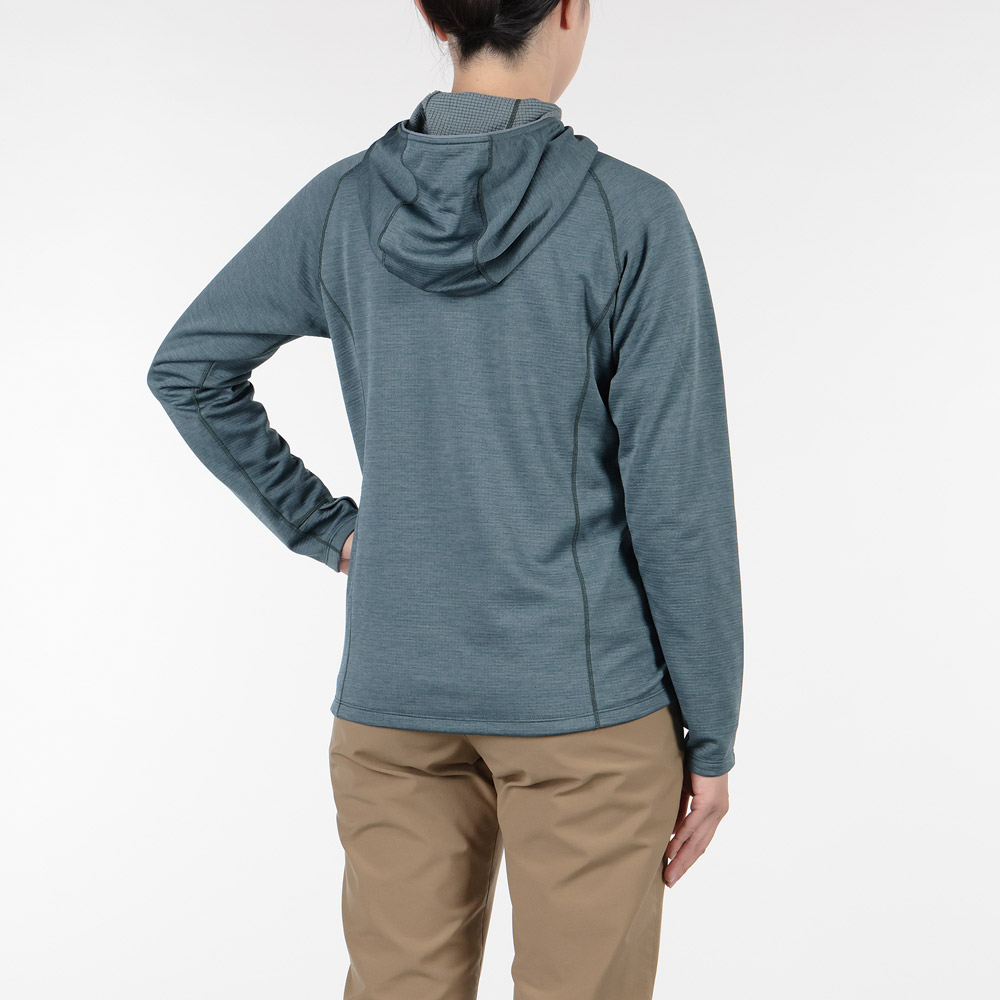 優れたストレッチ性を備え、動きやすく快適な着心地のパーカです。生地の表面は滑らかで雪がつきにくく、裏面は暖かな起毛地で保温性にも優れます。通気性もあるため蒸れにくく、冬山では中間着として、春・秋のトレッキングや夏の高山ではアウターとして、一年を通じて着用できます。