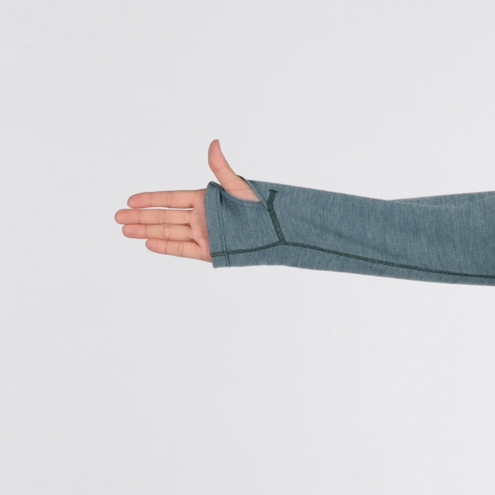 【特長】縫い目を平らに仕上げた肌あたりの良い裏面 / ジッパーがあごに当たらない仕様 / サムホール