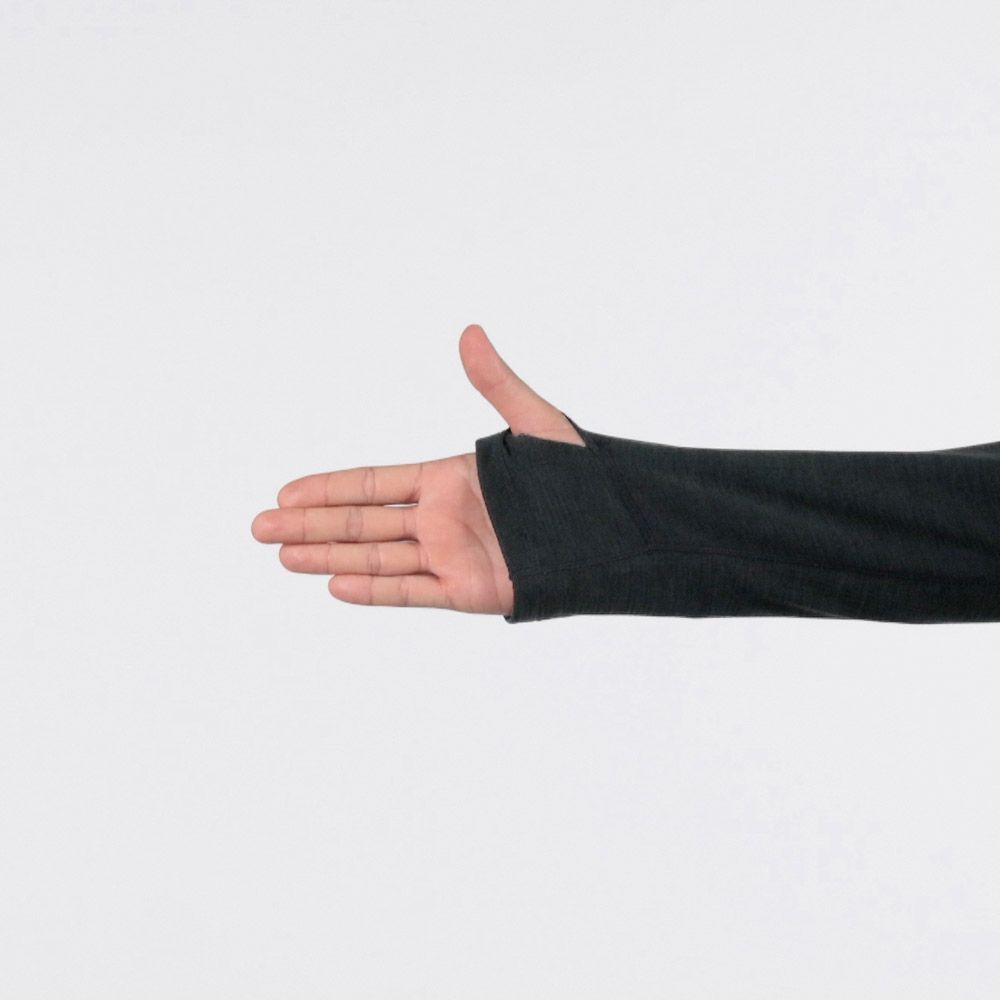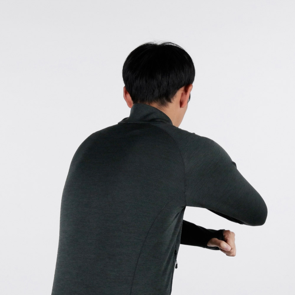 【特長】縫い目を平らに仕上げた肌あたりの良い裏面 / ジッパーがあごに当たらない仕様 / サムホール
