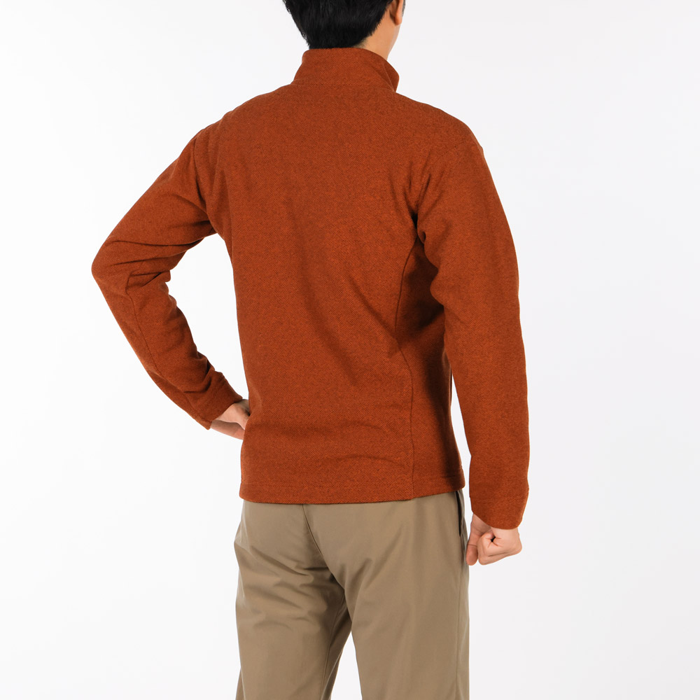 ツイード調の上質な風合いを持つフリース素材。軽量ながらも暖かく、裏面は柔らかな起毛地です。トレッキングから旅行、タウンユースまで幅広く使えます。
