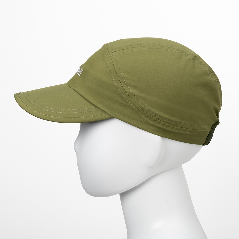 コットンのような柔らかさと肌触りを持ちながら、速乾性にも優れる軽やかなキャップです。ツバにしっかりとした芯を入れ、型くずれを防いでいます。後頭部のバックル付きナイロンテープでサイズ調節が行えます。