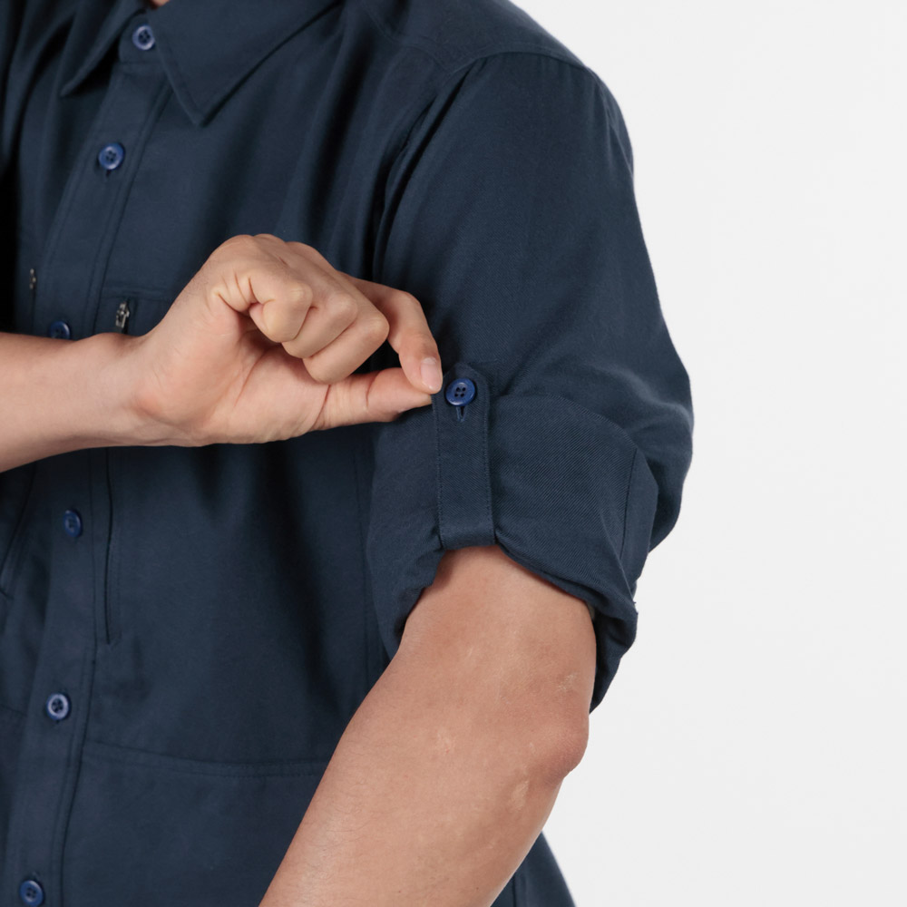 柔らかい肌触りの中厚手の素材を使用したシャツです。高い通気性とUVカット効果を備え、日差しの強いフィールドでも快適です。気候に応じて、袖はロールアップでまくることもできます。野外活動や旅行などに適しています。