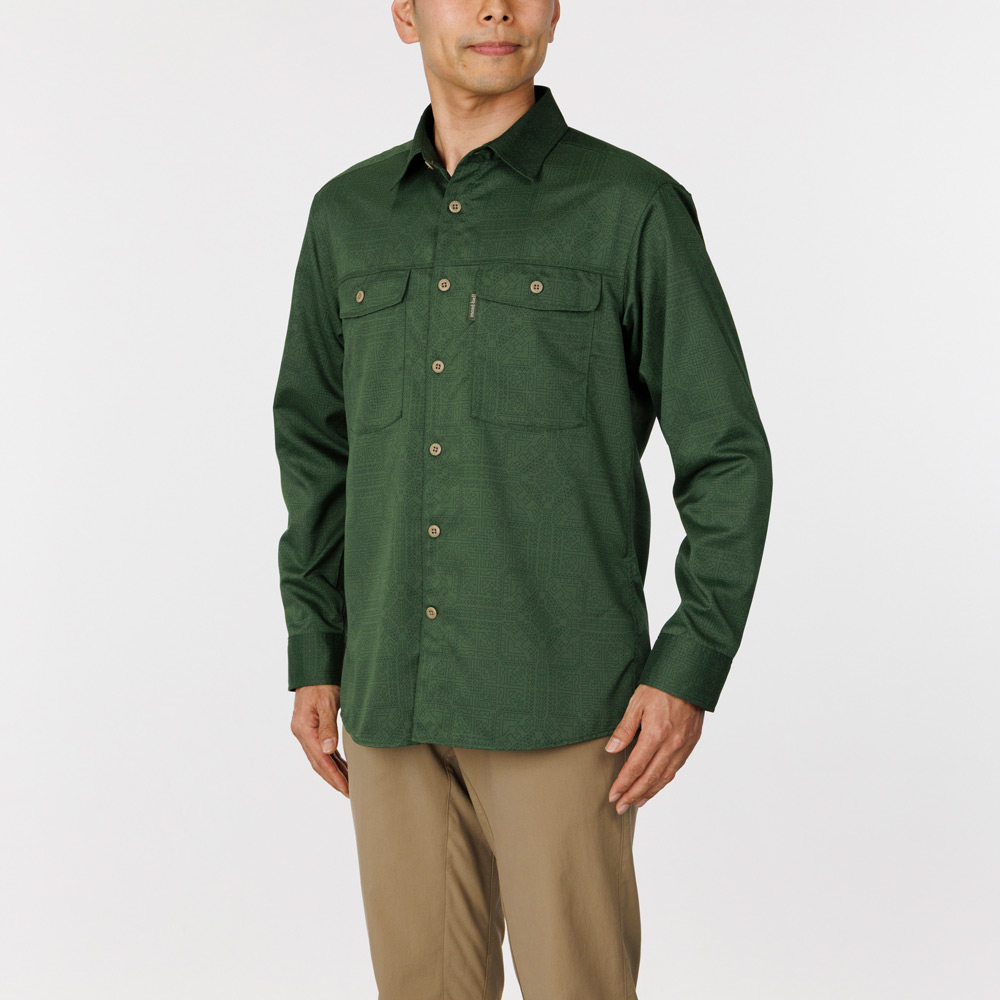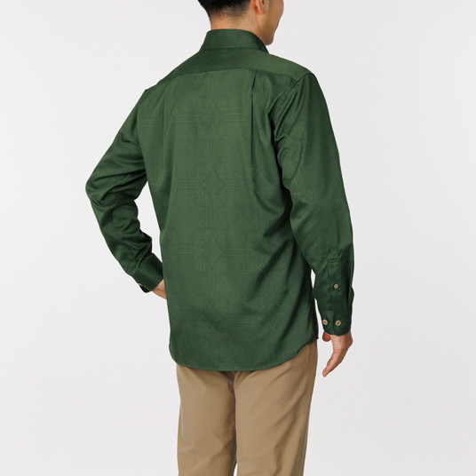 吸水拡散性と適度な保温性を備えた中厚手のウイックロン®を使用した、プリント柄のシャツです。やわらかな風合いが心地よく快適な着用感です。