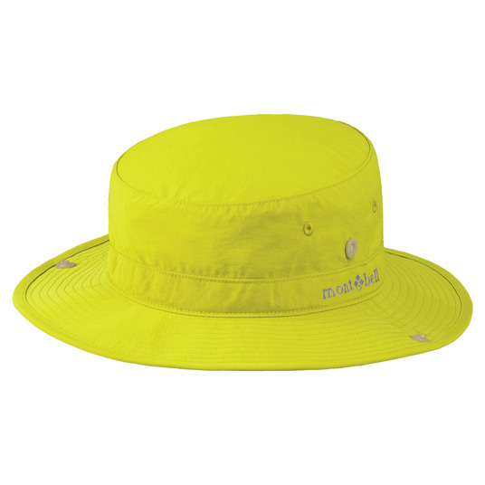 しなやかで乾きの速い生地を使用し、表面にははっ水加工を施したハットです。帽体の前を浅くして良好な視界を確保し、後ろを深くすることで風に飛ばされにくくしています。ツバはサイドをはね上げてホックで固定することも可能。あごひも付き。