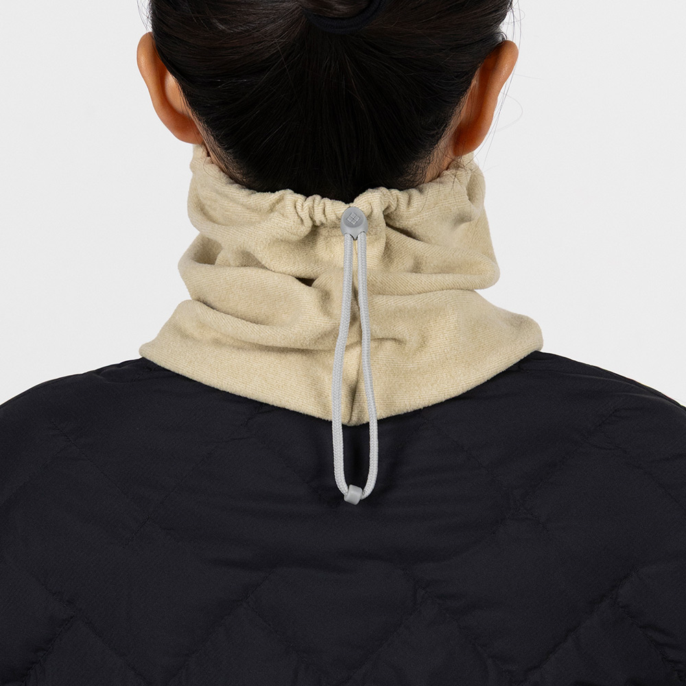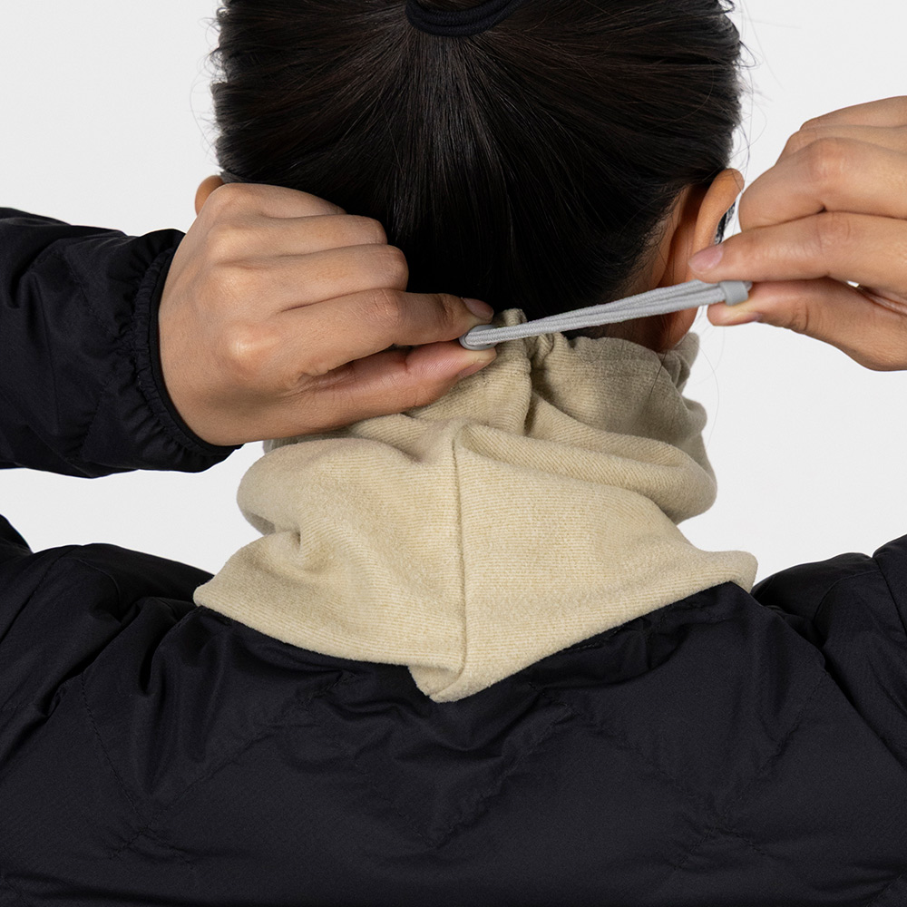肌触りが大変優しい薄手のフリース素材を使用したネックゲーターです。上部のストレッチ性のあるひもとコードロックでフィット感が調節でき、鼻部分には調節可能な樹脂製の芯を入れているため、ずれ落ちにくくなっています。