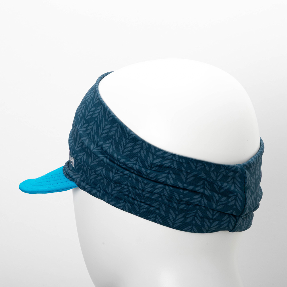 ヘッドバンドタイプのサンバイザーです。ツバには芯が入っており形状を自由に変えることができます。汗止めの役割をするヘッドバンド部分は、優れたストレッチ性と吸水拡散性を備え、運動量が多い場面でも快適に着用できます。